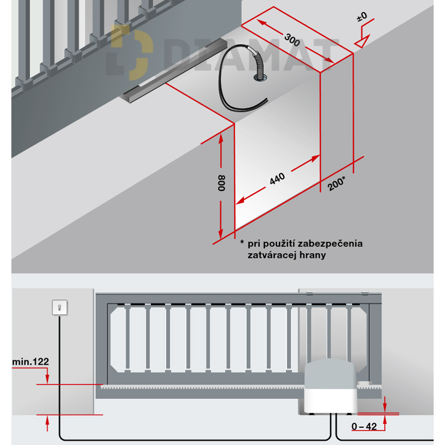 - Maximálna rýchlosť chodu brány cca 220 mm/s